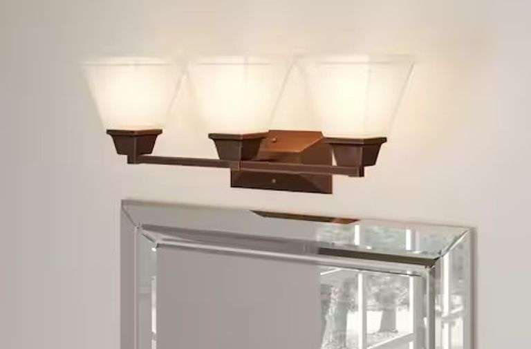 Lot 3:Hampton Bay Model 570323 Addison 3-Light Oil Rubbed Bronze Kitchen Island Light with Tiffany Style S